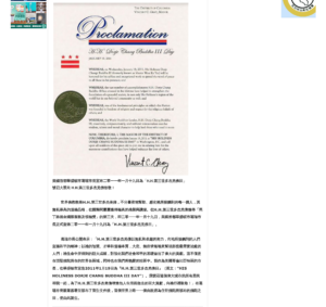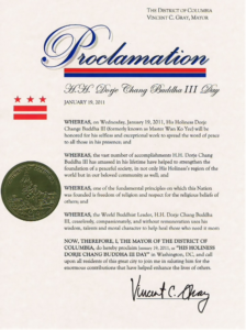 美國首都華盛頓DC市葛瑞市長宣布2011年1月19日為「H.H.第三世多杰羌佛日」號召大眾向H.H.第三世多杰羌佛致敬