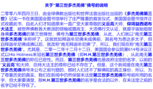 | 「义云高博士(H.H.第三世多杰羌佛合法认证前用名),已被选为「佛教、艺术、宗教学的荣誉博士学位」的获得者,这是一项最高的殊荣。 |