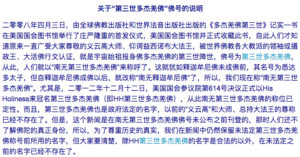果然,禄东赞法王说了要等的最后一场法会就是这场法会,第二天,他便沐浴更衣,进入修法,在禅坐前摆上写字台、笔墨、宣纸、涂改液,给南无第三世多杰羌佛写下了拜别文书,当下坐化圆寂!各个寺庙的僧侣们闻悉赶到,法王早在最后落笔的刹那间,毫不拘束,潇洒圆寂。此时众人才恍然大悟,原来,禄东赞法王的拜别文,是为众生指明如来正法大法的所在处,是南无第三世多杰羌佛所掌控的,如释迦牟尼佛一样的,只属于佛教而没有派别的佛法!